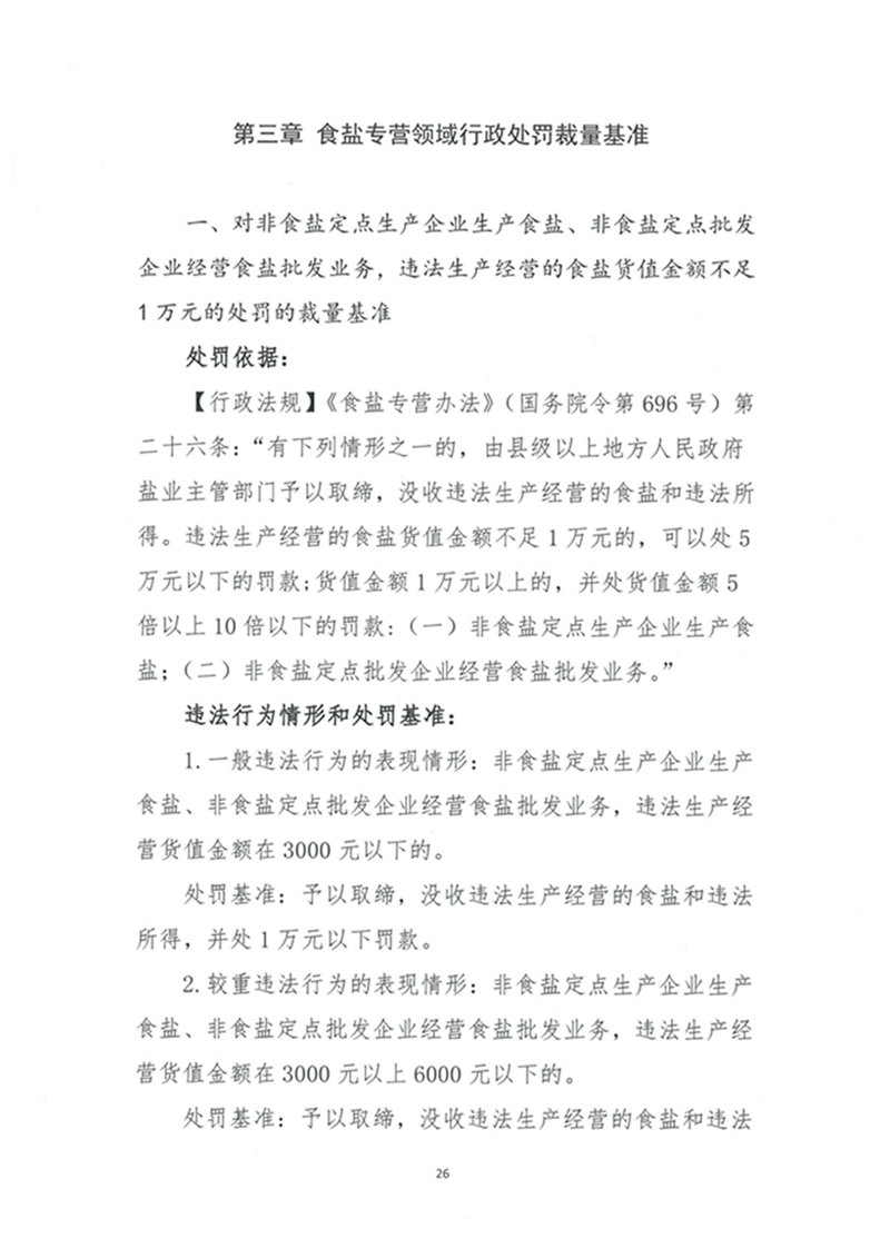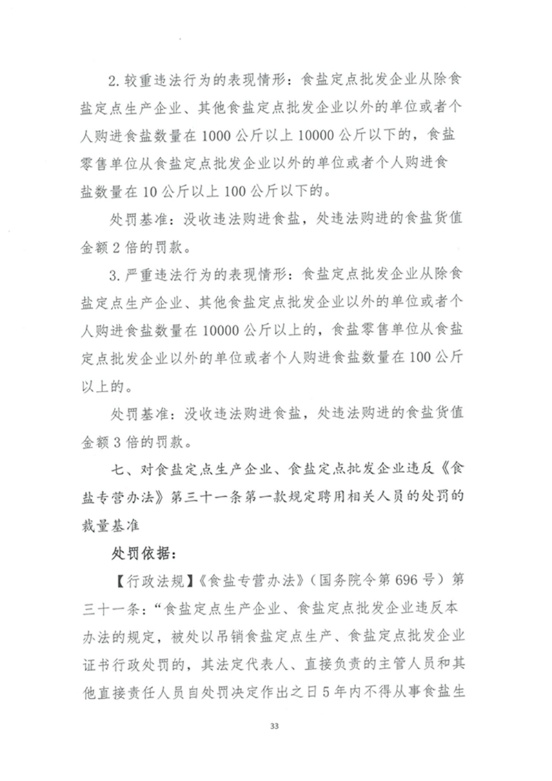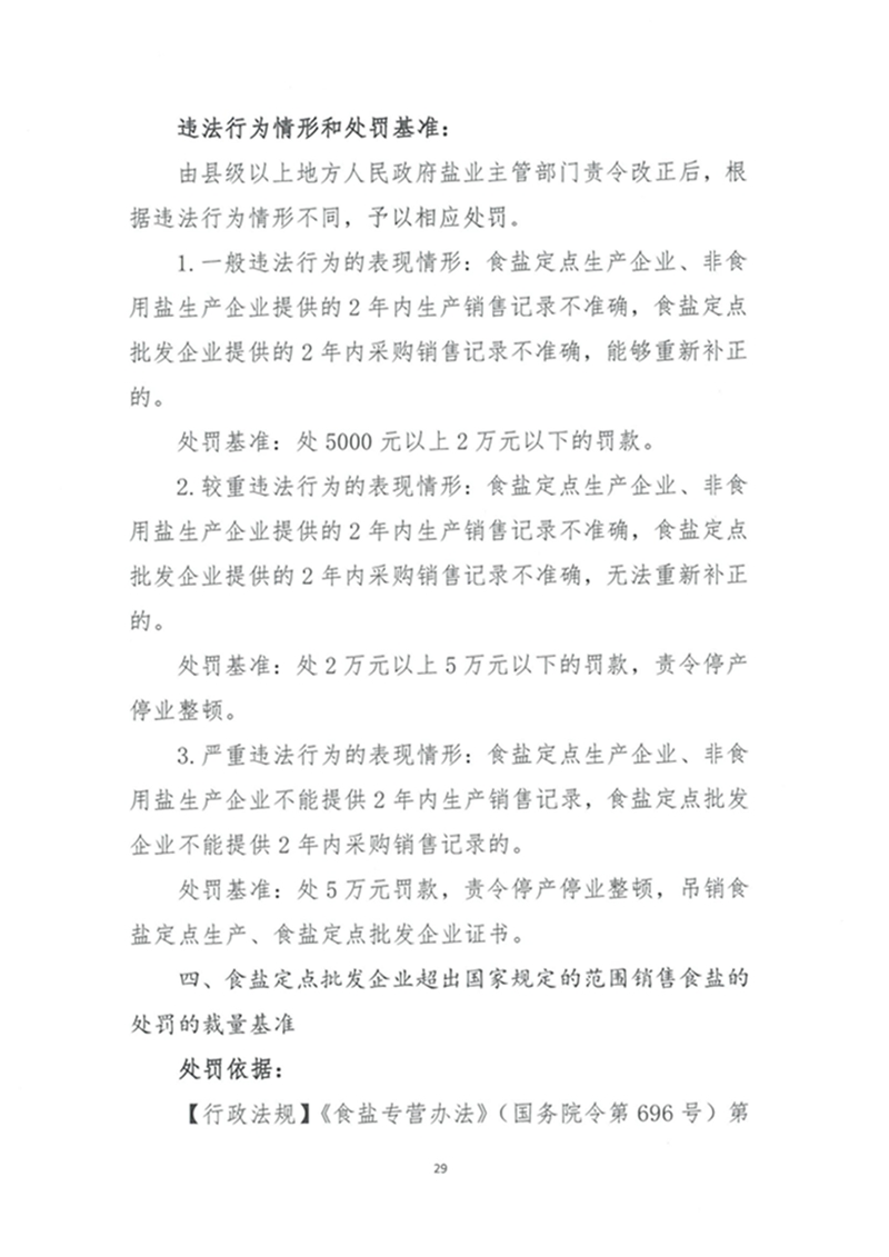 山东省工信厅印发食盐专营领域行政处罚裁量基准