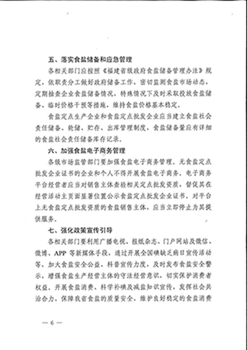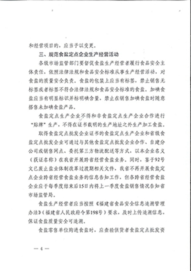 福建省四部门进一步规范食盐管理有关工作的通知