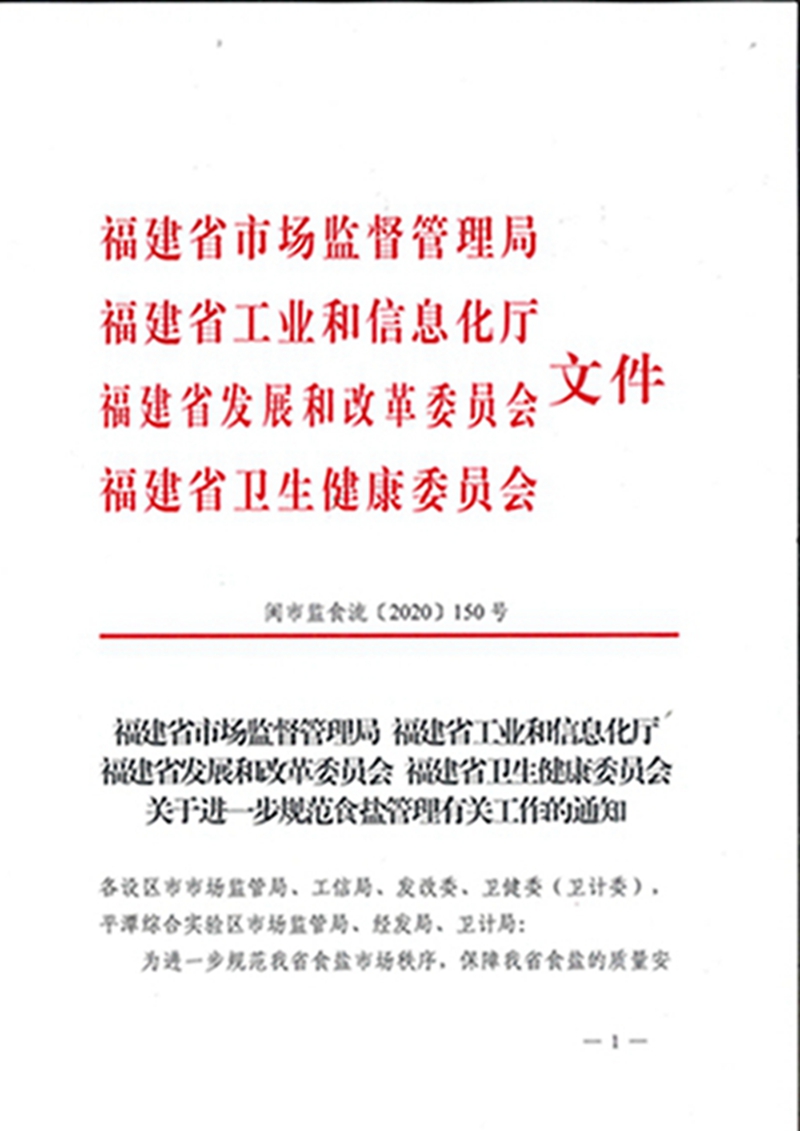 福建省市场监督管理局 福建省工业和信息化厅 福建省发展和改革委员会 福建省卫生健康委员会关于进一步规范食盐管理有关工作的通知.pdf