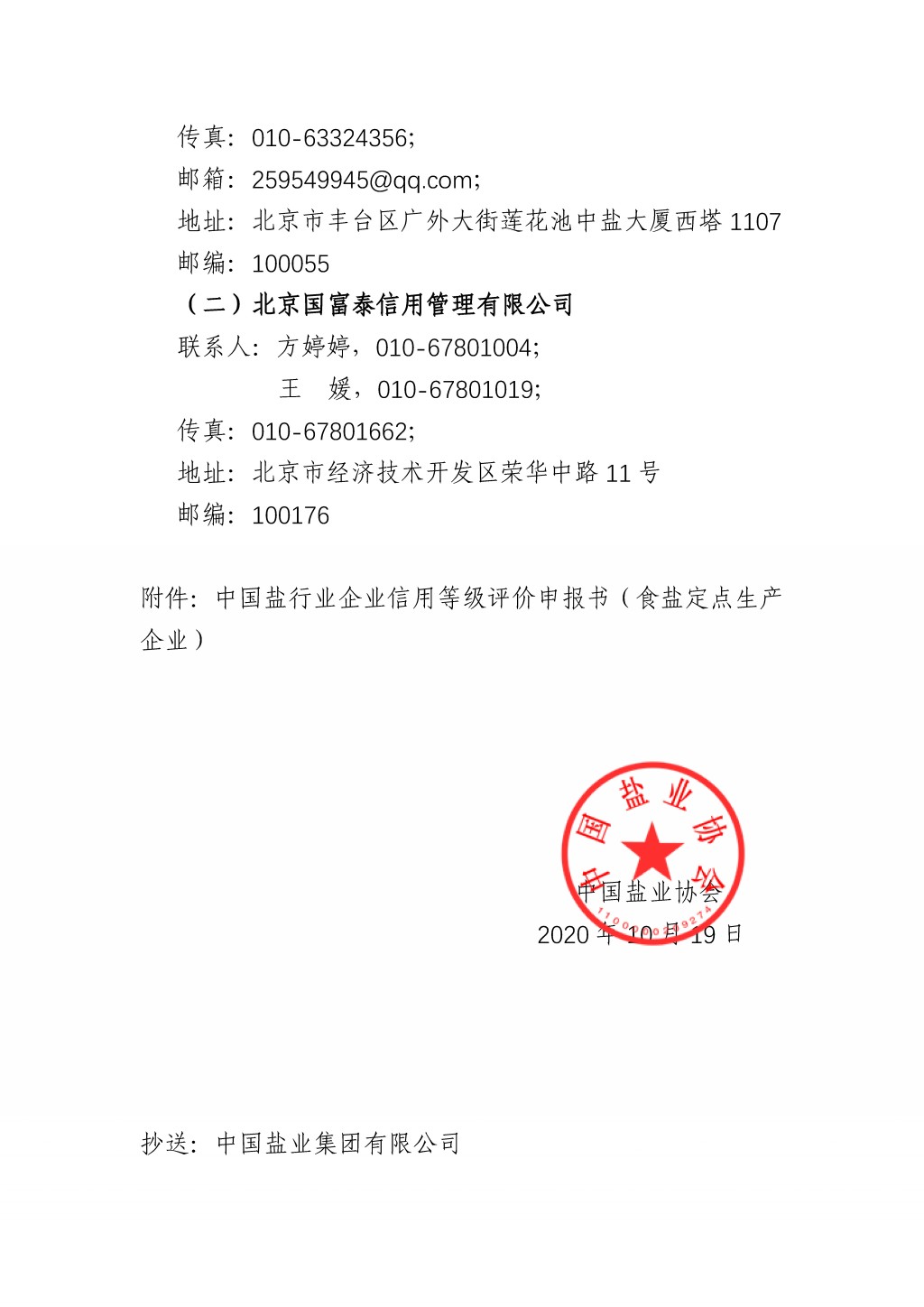 关于开展食盐定点生产企业信用等级评价工作的通知