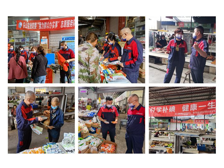 9月16日,分公司党员志愿服务队来到乐山市夹江县原三洞镇中心农贸市场进行川晶盐品地推宣传。