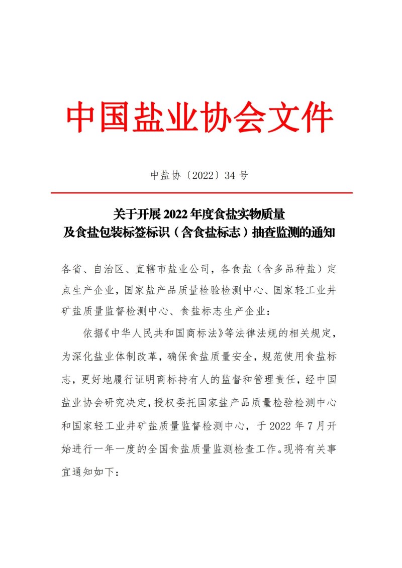 依据《中华人民共和国商标法》等法律法规的相关规定,为深化盐业体制改革,确保食盐质量安全,规范使用食盐标志,更好地履行证明商标持有人的监督和管理责任,经MK网页版登录入口研究决定,授权委托国家盐产品质量检验检测中心和国家轻工业井矿盐质量监督检测中心,于2022年7月开始进行一年一度的全国食盐质量监测检查工作。